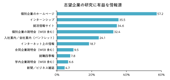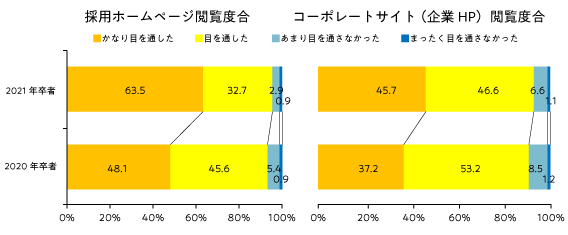 新卒採用だけにフォーカスしてしまうと、学生の半数以上が採用ホームページとコーポレートサイトを閲覧している。